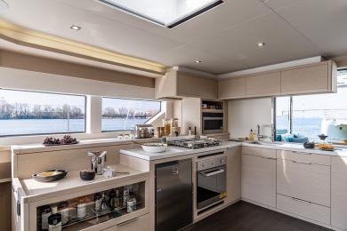 This catamaran creates a seamless connection between you and your surroundings bringing you piece and harmony. Last but not least you will have fun with the great variety of water toys and the tenderlift transforming into a bathing platform, an invitation for swimming and relaxing with your feet in the water.