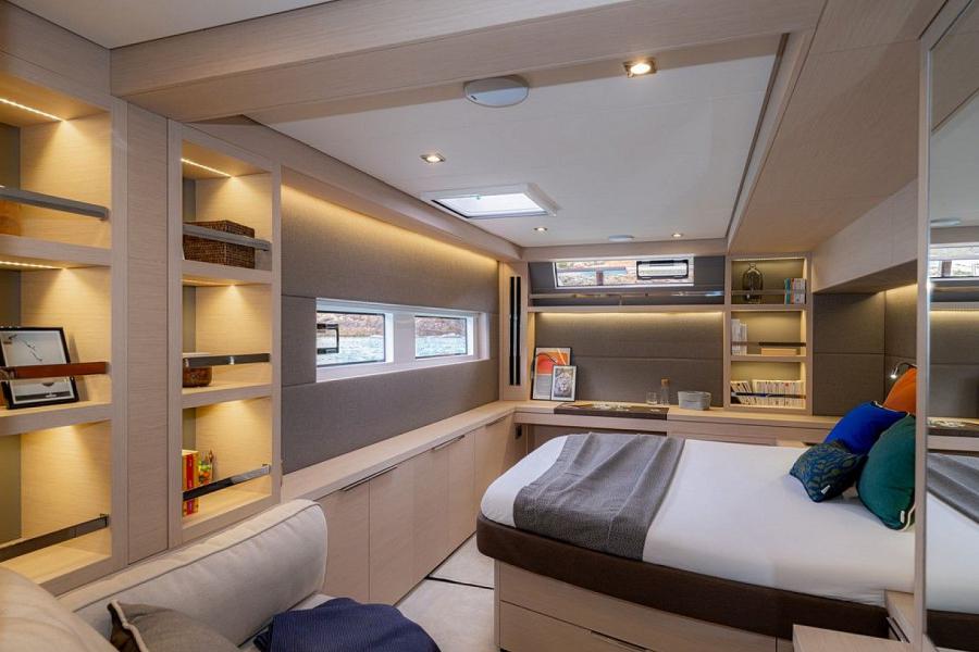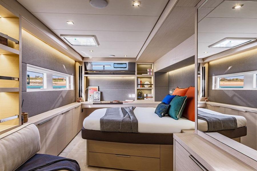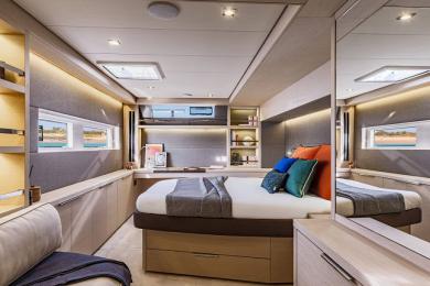 The salon is spacious and modern optimized to invite natural light and in the cabins guests will feel as one with the sea blending in with the horizon.