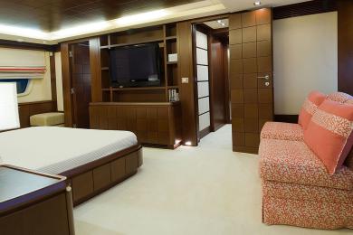 Koukles offers guest accommodation for up to 8 guests in 4 suites comprising a master suite, one VIP cabin, one double cabin and one twin cabin. There are 5 beds in total, including 1 queen, 2 doubles and 2 singles. She is also capable of carrying up to 6 crew onboard to ensure a relaxed luxury yacht charter experience.
