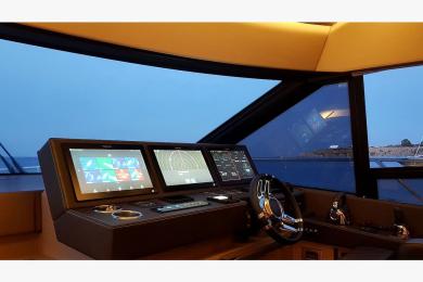 Generous living spaces include the immense saloon, three cabins with private head and shower compartments, including a centre-line owner’s cabin and a crew cabin, as well as the flybridge for absolute comfort on board. Luxurious interior furnishings reveal a selection of materials, colour harmonies and a level of equipment normally reserved for large cruising yachts.